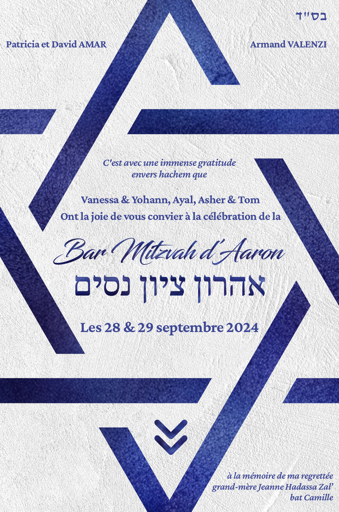 Nous serons heureux de vivre cemoment avec vous le Dimanche 29 Septembre 2024 à 8h00(Selihot 7h00)à la Synagogue de Massy Allée Marcel Cerdan, 91300 MassyUn petit déjeuner suivra l’office
